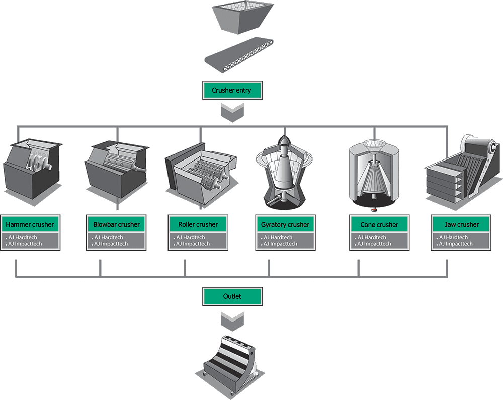 ابعادسنگهای معدنی و مواد اولیه ورودی به سنگ شکن موجب ایجاد سایش، ضربه و یا ترکیبی از هر دو عامل در قطعات شده و طول عمر و راندمان سنگ شکن ها را کاهش میدهد. شرکت آلیاژ جوش آریا با بررسی علمی و فنی فرآیند تولید، جنس مواد ورودی و شناسایی عوامل غالب و تأثیرگذار در فرسایش این تجهیزات، روش های کاربردی و مؤثر جهت بازسازی آنها طراحی و ارائه مینماید. فرآیند جوشکاری و مواد طراحی شده مورد استفاده این شرکت موجب دستیابی به مزایای زیر میگردد: