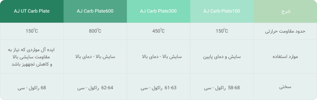 معمولاً این نوع ورقها در ۴ پوشش به بازار عرضه میگردند. تفاوت این پوششها در میزان سختی آنها و مقاومت در برابر سایش آنها در دمای مختلف کاری میباشد.